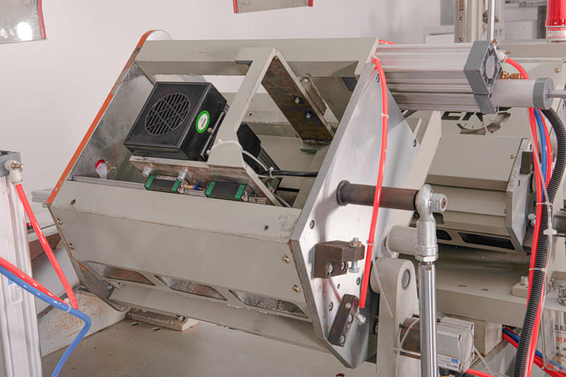 Có piston kẹp phôi chống văng DC là giải pháp chống văng, nổ nhôm khi sử dụng máy cắt nhôm 2 đầu. Chụp bảo vệ DC được thiết kế lên xuống theo phương thẳng đứng trên ray trượt vuông. Nhờ vậy mà người vận hành máy có thể an tâm khi thực hiện thao tác cắt nhôm.