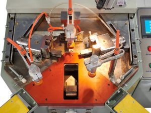 Máy ép góc CNC Faster hay còn gọi là máy bấm góc. Là thiết bị được sử dụng để ép góc 90 độ cho cửa đi, cửa sổ, hay các hệ nhôm chất lượng cao – máy kết hợp giữa ép nhôm và ke góc. Ngoài ra, máy ép góc CNC Faster còn được định vị bằng các pittong, có thể tùy ý điều chỉnh lên xuống để xử lý hình dạng kích thước phôi khác nhau.